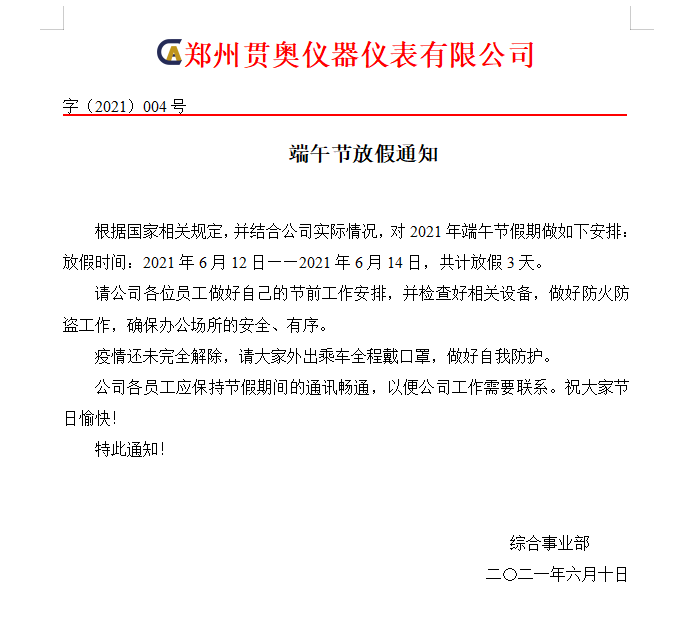 根據(jù)國(guó)家相關(guān)規(guī)定,并結(jié)合公司實(shí)際情況,現(xiàn)對(duì)2021年端午節(jié)假期做出以下安排:
