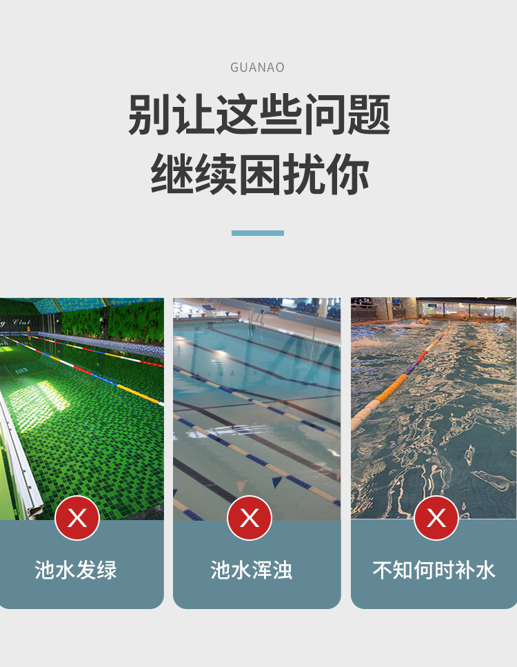 4、檢測精準,項目齊全。貫奧泳池水質(zhì)監(jiān)測儀器設(shè)備可檢測12個常規(guī)項目,參數(shù)可自由定制。